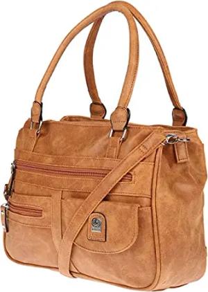 Damen Tasche Schultertasche Umhängetasche Crossover Bag Leder Optik Handtasche Camel