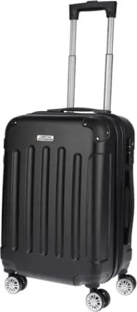 Handgepäck, 4 Rollen, Schwarz mit Linesmuster, Koffer, Trolley, Leicht, Bordgepäck, mit Dehnfuge für Verbreiterung