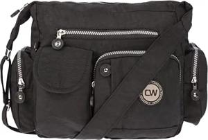 Damen Tasche Schultertasche Umhängetasche Crossover Bag Handtasche Schwarz