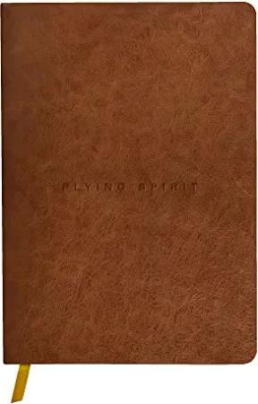 106946C Heft Flying Spirit, Cover aus Leder, 14,8 x 21cm, Fadenbindung, Lesezeichen, 90 Blatt, 90g, liniert, 1 Stück, Cognac