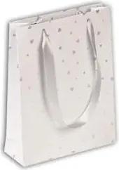 212869Cpack - Packung 5 Geschenktasche - Tüte , Format M (17x6x22 cm), Kollektion Valentine, 170g, Weiß - Herzen, geeignet für Geschenke, 1 Pack