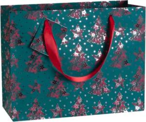 212904Cpack - Packung 5 Geschenktasche - Tüte , Format Shopping (32x13x24,5cm), Kollektion Velvet 2, 170g, Tannenbaum - Grün, geeignet für voluminöse Geschenke, 1 Pack
