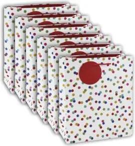 26988-3Cpack - Packung 6 Geschenktasche - Tüte Excellia, Format M (21,5x10,2x25,3 cm), 210g, geeignet für Geschenke, Kraft - bunte Punkte, 1 Pack
