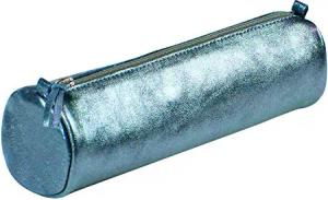 8688C Schlampermäppchen (mit Perlmutt-Effekt rund, 5,5 x 22cm, praktisch und robust, aus Leder) 1 Stück silber