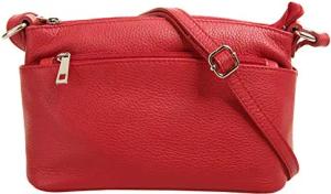 Umhängetasche Echt Leder Damen | Made in Italy, Crossbody Bag, Messenger Bag mit Reißverschluss, Schultertasche aus Rindleder rot | 020617