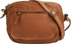 Umhängetasche Echt Leder Damen | Made in Italy, Crossbody Bag, Messenger Bag mit Reißverschluss, Schultertasche aus Rindleder cognac | 020617