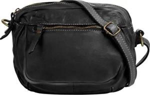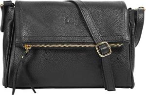 Umhängetasche Echt Leder Damen | Made in Italy | handliche Crossbody | elegante Minibag mit Reißverschluss schwarz | 019562