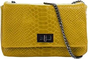 Umhängetasche Echt Leder Damen | Made in Italy | Kroko-Look Crossbody | Party Clutch mit Drehverschluss gelb | 021221
