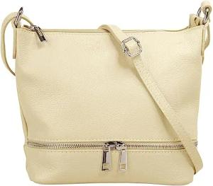 Umhängetasche Echt Leder Damen | Made in Italy, verstellbarer Schultergurt, Handtasche mit Reißverschlüssen, verstärkter Boden beige | 020960