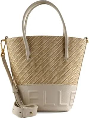 Leder Handtasche Schultertasche Myrtha Bicolor Straw Handbag Mul. Blanco/Blan beige