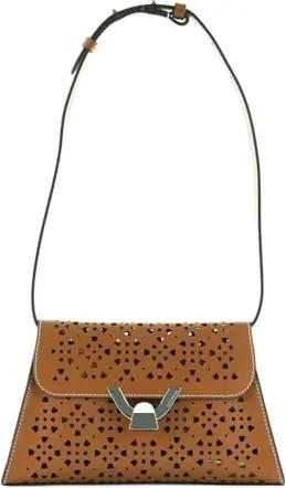 Leder Schultertasche Abendtasche Dew Cow Perforation Handbag Cuir braun
