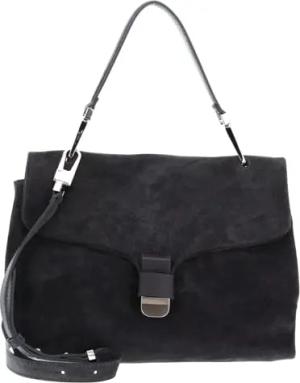 Leder Schultertasche Neofirenze Sued Handbag Ardesia dunkelgrau