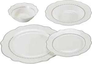 24-teiliges Geschirrset aus Porzellan für 6 Personen in Weiß mit Silberumrandung