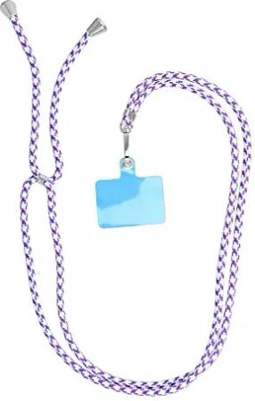 Anhänger kompatibel mit Smartphones mit Einstellbarer Länge/Kabellänge 165cm Kordel (max 82,5cm in Schleife) / für Schulter oder Nacken - Lila-Weiß