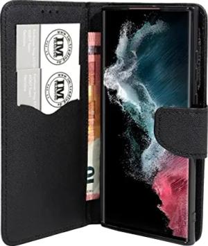 Buch Tasche Fancy kompatibel mit Samsung Galaxy S24 Ultra Etui mit Standfunktion, Kartenfach Schwarz