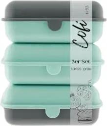 COFI Brotdosen 3er-Set – Lunchbox/Frühstücksbox – BPA-frei, spülmaschinenfest, stapelbar, 1600 ml Türkis-Grau
