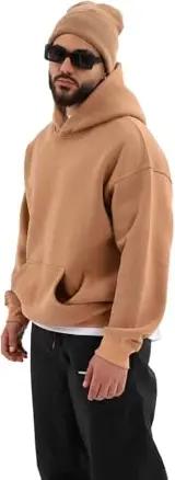 einfarbiger Basic Oversized Hoodie | Premium Herren & Damen Kapuzenpullover Unisex S Cappucino