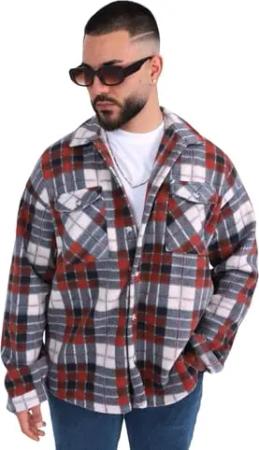 Herren Fleece Hemdjacke L Blau-Rot (46)