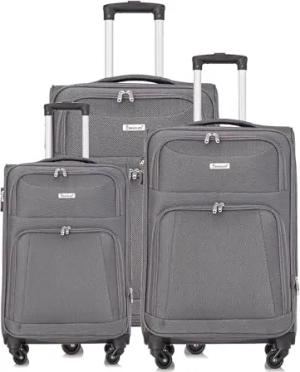 Hochwertiges 3er Kofferset aus Stoff mit Erweiterbarer Kapazität und 360° Rädern Grau