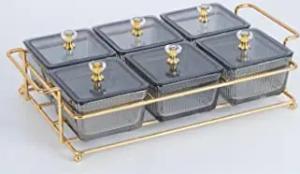Knabber Schalenset 6 Fächer mit Deckel und Ständer Cerezlik Servierschale Knabberschale aus Glas für Süßigkeiten, Dips, Nüsse, Chips Grau