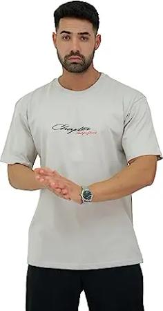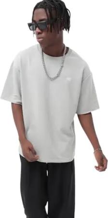 Oversize Herren Kurzarm T-Shirt Weiter Auschnitt Extra Lang Rundhals Herrenshirt S Grau