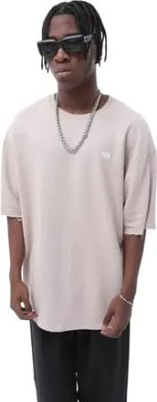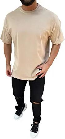 Oversize Herren Kurzarm T-Shirt Weiter Auschnitt Extra Lang Rundhals Herrenshirt XL Beige