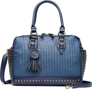 Schultertasche Berlin XL-Tasche mit Nieten und Flechtung 35cm x 24cm x 13cm