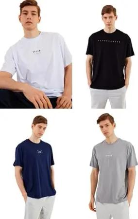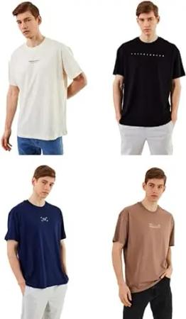 Herren T-Shirt Baumwolle Set 4er Pack – Rundhals Kurzarm Oversize Basic Shirt – Sommer Freizeitshirt Slim Fit Print Casual Sport Bekleidung