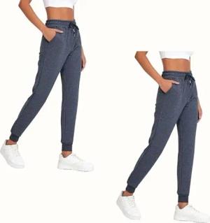 Jogginghose Damen Baumwolle – Sporthose Frauen Trainingshose,Yogahose, Freizeithose Lang, Bequeme Laufhose mit Elastischem Rippbündchen, Jogging Sweatpants (Dunkelblau, L)