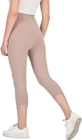 Leggings Damen 3/4 Atmungsaktiver Baumwolle - High Waist Caprihose, Kurze Sport Leggins, Radlerhose Elastische Blickdicht Yogahose Sporthose (Beige, S)