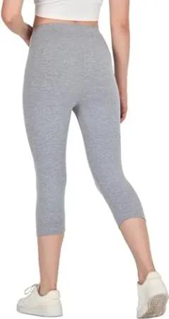 Leggings Damen 3/4 Atmungsaktiver Baumwolle - High Waist Caprihose, Kurze Sport Leggins, Radlerhose Elastische Blickdicht Yogahose Sporthose (Hellgrau, XXL)