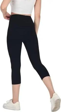 Leggings Damen 3/4 Atmungsaktiver Baumwolle - High Waist Caprihose, Kurze Sport Leggins, Radlerhose Elastische Blickdicht Yogahose Sporthose (Schwarz, XL)
