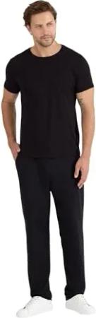 Schlafanzug Herren Lang - Baumwolle Pyjama Set Männer - Hausanzug Pyjamahose und T-Shirt
