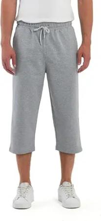 Sporthose Herren Kurz – 3/4 Capri Hose Herren - Kurze Hosen Männer Laufshorts Baumwolle Shorts (Hellgrau S)