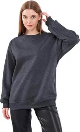 Sweatshirt Damen Bequemer Oversize Pullover aus Baumwolle, Langarmshirt als Basic Pulli ohne Kapuze Regular Fit (Dunkelgrau S)