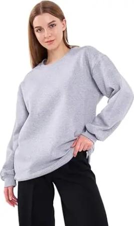 Sweatshirt Damen Bequemer Oversize Pullover aus Baumwolle, Langarmshirt als Basic Pulli ohne Kapuze Regular Fit (Hellgrau S)