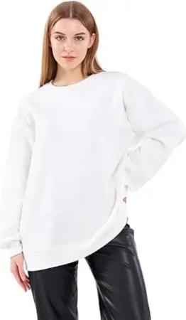 Sweatshirt Damen Bequemer Oversize Pullover aus Baumwolle, Langarmshirt als Basic Pulli ohne Kapuze Regular Fit (Weiß L)