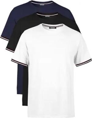T Shirt Herren Kurzarm Elegant Baumwolle Sport Männer Rundhals 2-3-4 Pack, Stylischer Streifen am Ärmel, Schwarz/Weiß/Navy