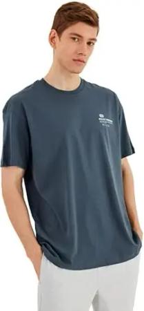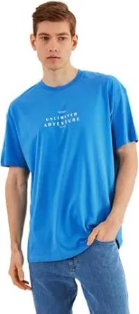 T Shirt Herren Kurzarm mit Loser Passform - Basic Männer T-Shirt Rundhals-Ausschnitt aus 100% Baumwolle Blau