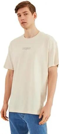 T Shirt Herren Kurzarm mit Loser Passform - Basic Männer T-Shirt Rundhals-Ausschnitt aus 100% Baumwolle Beige
