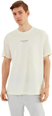 T Shirt Herren Kurzarm mit Loser Passform - Basic Männer T-Shirt Rundhals-Ausschnitt aus 100% Baumwolle Ecru