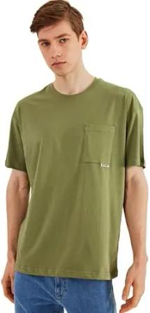 T Shirt Herren Kurzarm mit Loser Passform - Basic Männer T-Shirt Rundhals-Ausschnitt aus 100% Baumwolle Khaki