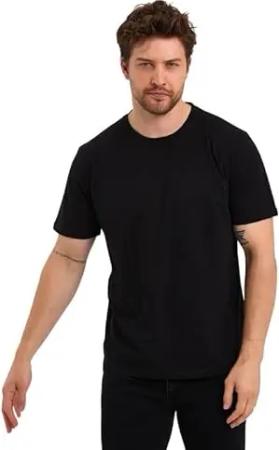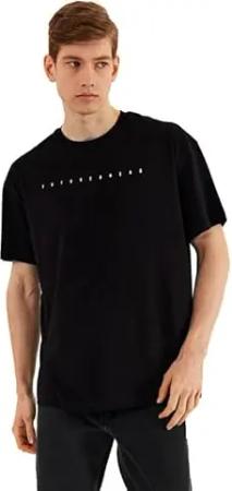 T Shirt Herren Kurzarm mit Loser Passform - Basic Männer T-Shirt Rundhals-Ausschnitt aus 100% Baumwolle Schwarz