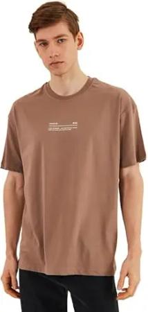 T Shirt Herren Kurzarm mit Loser Passform - Basic Männer T-Shirt Rundhals-Ausschnitt aus 100% Baumwolle Visone