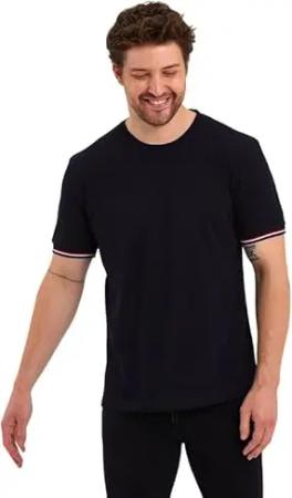 Tshirt Herren Kurzarm Elegant Baumwolle Sport Männer Rundhals, Stylischer Streifen am Ärmel, 2-3-4 Pack, Navy