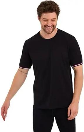 Tshirt Herren Kurzarm Elegant Baumwolle Sport Männer Rundhals, Stylischer Streifen am Ärmel, 2-3-4 Pack, Schwarz