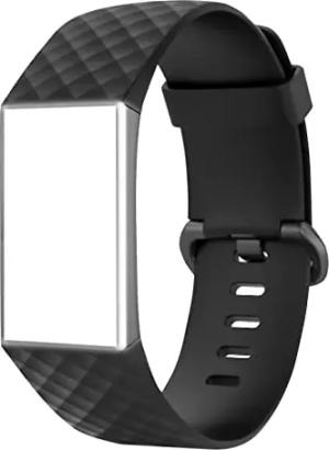 Armband kompatibel mit Fitbit Charge 3 / Charge 4 aus Silikon, [Flexibles Sport Fitness Uhren Band], Damen und Herren - Schwarz