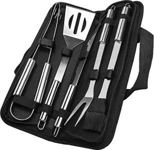 BBQ Grillbesteck 5er Set mit Tasche [Edelstahl Grill Zubehör] für Garten, Camping [Grillkoffer, Grillzange, Grillgabel, Grillmesser, Pinsel, Wender] inkl. Aufbewahrugstasche