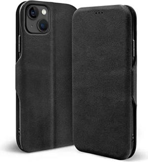 Flip Case Handy für iPhone 15 Shell Flip Case, dünne Business Klapphülle mit Magnetverschluss & Kartenfach, kompatibel mit iPhone 15 (6,1 Zoll), Schwarz