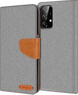 für Samsung Galaxy A52 / A52 5G / A52S 5G Textil Wallet Case, Stoff-Design mit Magnetverschluss & Kartenfächern, kompatibel mit Samsung Galaxy A52 / A52 5G / A52S 5G (6,5 Zoll), Grau